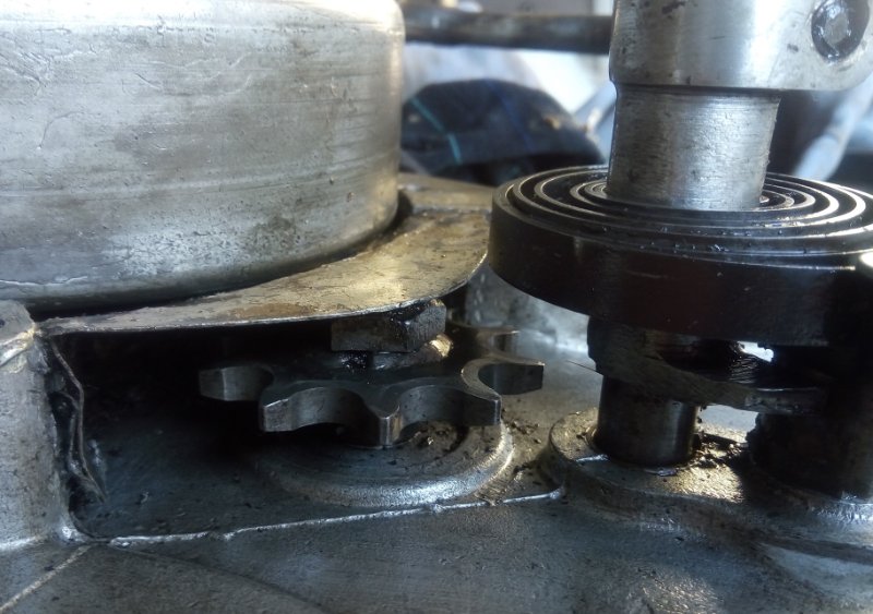 L'option "remplacer par un pignon d'origine" pose d'autres problèmes : certes je retrouve la possibilité d'insérer une clavette toute neuve (donc problème réglé), mais le rapport de démultiplication ne sera plus le bon, et, pire, vu le décalage du pignon, je me retrouverai sûrement avec un souci d'alignement jusqu'à la couronne...